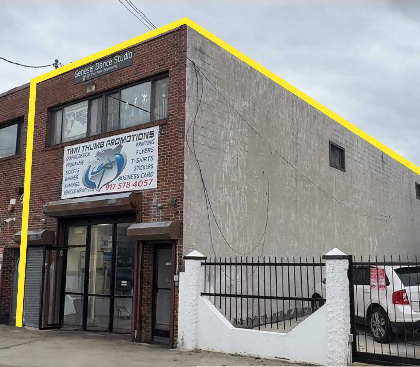 The property is currently occupied by two tenants: Genesis Dance Studio, which occupies the upper level, and Twin Thumb Graphic Design & Printing Studio, which occupies part of the lower level. Both tenants operate on month-to-month leases, providing flexibility for a buyer to bring rents to market value or take full possession at closing.